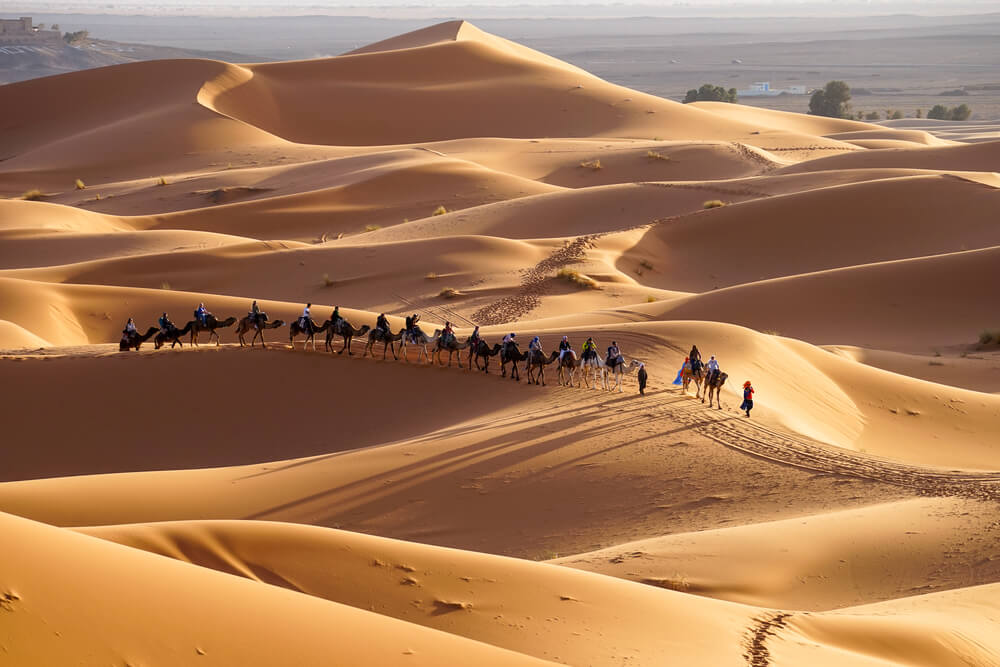 Early wake-up to enjoy sunrise over the Sahara dunes. Optional quad biking or camel riding. Picnic lunch in the desert. Afternoon helicopter sightseeing over the Sahara. Evening: dinner and overnight in desert camp.